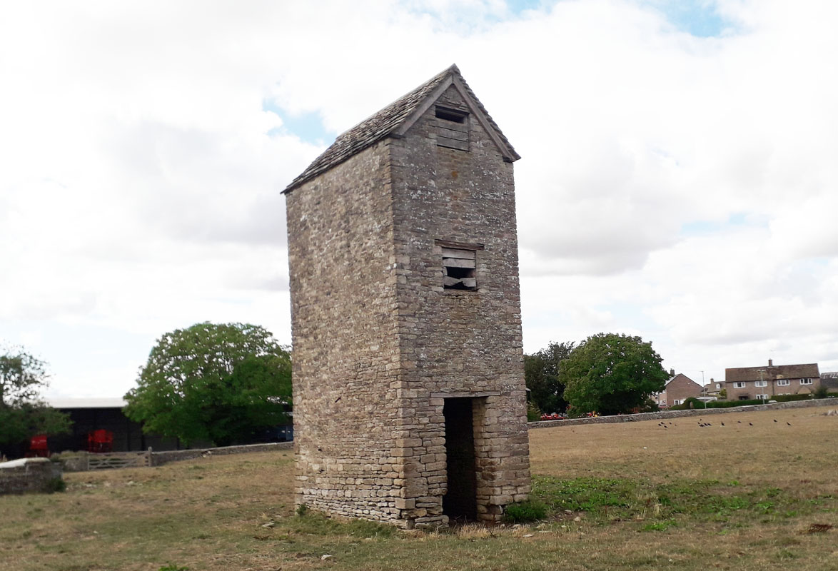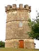 The second tower lies south of Fairford. To view the second take the A417 from Cirencester to Lechlade, which passes through Fairford. As you approach Fairford, turn right at Milton End on to the South Cerney Road. After about a mile, the tower can be seen on the left at Harcott Hill. Click right for a picture. Grid Ref. 158001.