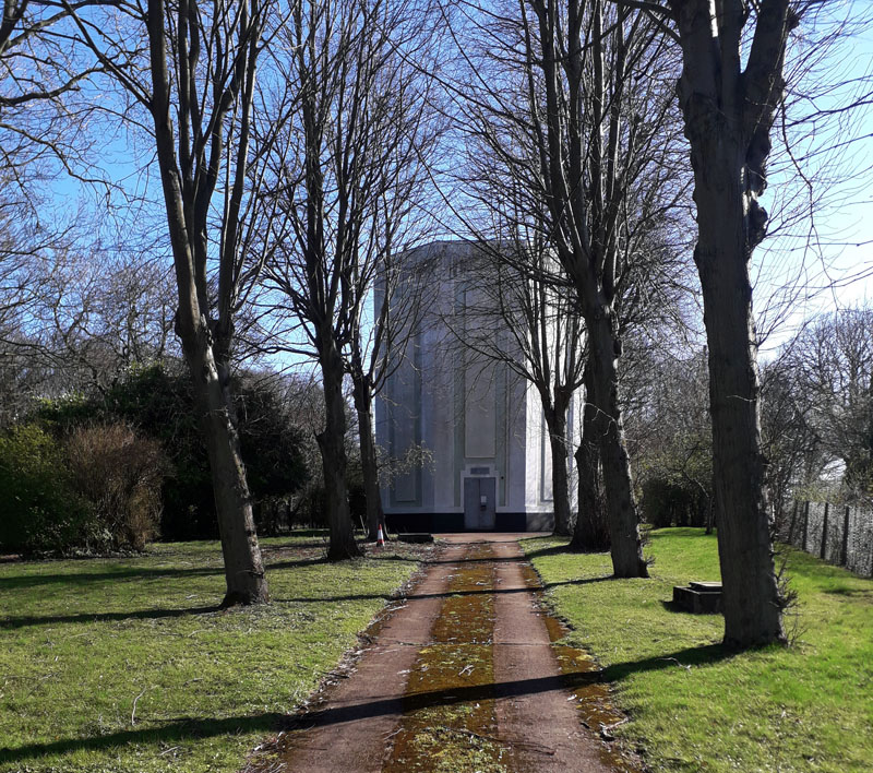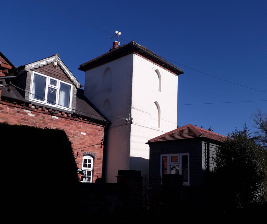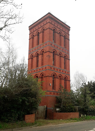These two water towers are located at Headless Cross, a village on the south-west side of Redditch about 2 miles north of Astwood Bank. Tower "a" is managed by Severn Trent Water and is a prominent landscape feature, visible from great distance. It dates from the 1970s and lies on the eastern side of the main road opposite Highfield House. Grid ref. SP 0387 6602. The second tower "b" lies on the western side of the main road almost opposite "a". This brick tower dates from 1882 when it was built by the East Worcestershire Water Company. It was superseded by tower "a" and has subsequently become residential.