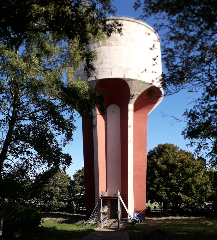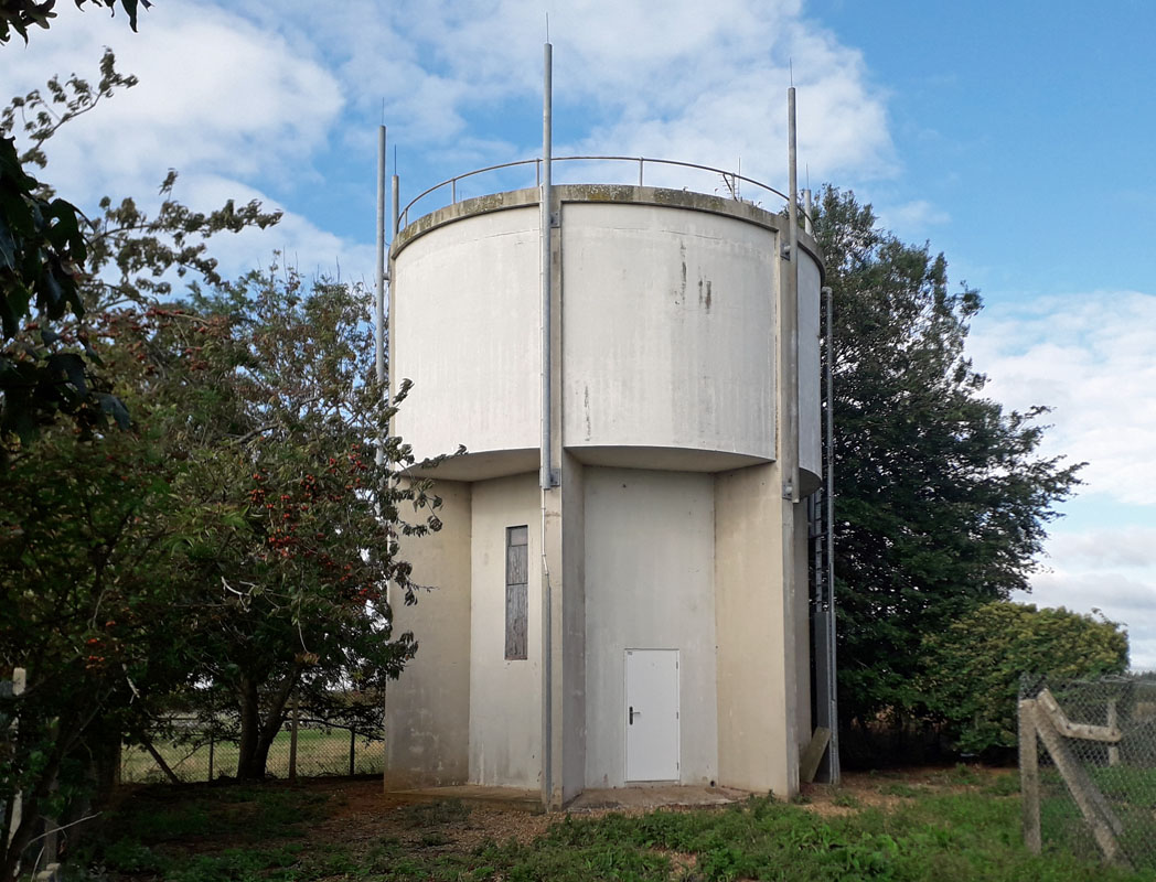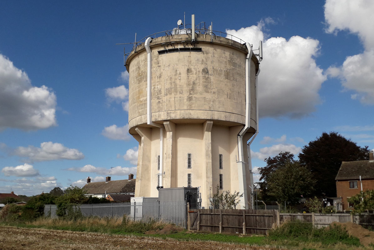 BARBY WATER TOWER (15NS01)These two towers lie about 200 yards from each other in a field on the north-west side of the cross roads, just south of the village of Barby, south-east of Rugby. Grid Ref, 542695. They are described as two water towers elsewhere but appear to be a water tower and a windmill, the latter converted to residential. One may well be in Warwickshire as the county boundaries are in the immediate vicinity. PRESTON CAPES WATER TOWER (15NS02)The village of Preston Capes is about six miles south of Daventry. This tower lies to the west of the village on the road to Charwelton by the road junction with the road south-west to Woodford Halse. Grid Ref. 567546. On the same plot is an aerial mast making the tower easy to spot. HALSE WATER TOWER (15NS03)Halse is a village about three miles north-west of Brackley. The water tower lies about half a mile north-east of the village. It can be accessed via a bridleway past Halse Grange. It is a major local landmark and lies on a hill devoid of trees to conceal it. Grid Ref. 5708740782. It was built by Brackley Rural District Council in 1951. EVERDON STUBBS WATER TOWER (15NS04)NN12 8HD. Near Farthigstone. Everdon Stubbs is a woodland area about 5 miles south-east of Daventry. The tower lies between Everdon and Heath Farm to the east. Grid Ref. 611565. It was the subject of a compulsory purchase order in 1953/4 by Mid Northamptonshire Water Board and was subsequently sold on in 2011. The tower is open for viewing at selected times. West Haddon, which is located east of Rugby. The tower is just off the A428, close to the southern end of the A428 by-pass of West Haddon. It is managed by Anglian Water. FLORE WATER TOWER (15NS06)Hillside Road, Flore, NN7 4NA, on the western side of the village. Flore lies about 6 miles west of Northampton near junction 16 of the M1 motorway. Grid Ref. 6460. 7 East Haddon WHITTLEBURY WATER TOWER. (15NS08)Kennel Road, Whittlebury. The tower lies on the western side of the A413 road between Buckingham and Towcester. Grid Ref. 690436. This tower is located on the Roman Road between Nobottle and Northampton, north of Harpole. It is owned by Anglian Water. PAULERSPURY WATER TOWER. (15NS10)The village of Paulerspury lies about 3 miles south-east of Towcesster. To the west of the village is Pury End, a small hamlet where the water tower can be found. It is up a long half-mile track heading south-west and hidden in a clump of trees. Grid Ref. 756428. The tower was built in 1938 near a well on the western side of the parish supplying standpipes located at Pury End, Church End, Tews End and Plumpton End. Located on the road to Northampton in the southern part of the village of Blixworth. Seen from the garden of the house in the foreground, behind one of the two hydrangeas. Grid Ref. SP 74840 70240. YARDLEY GOBION WATER TOWER (15NS12)Moorend Road. The village lies on the A 508 road and the water tower is on the western perimeter of Yardley Gobion. In 1934 Towcester R.D.C. commissioned a new water supply system for the village at a then high cost of 1,388pounds 18s 8d. A local resident was appointed engineer/caretaker of the Waterworks which includede a 'Pumping Station', 'Water Tower' and 'Piping System to five Standpipes'. The tower had a capacity of 33,000 gallons. The most heavily used standpipe was situated at Church Bank adjacent to Church House. Today only the tower survives. Grid Ref. 759449. ROADE WATER TOWER 1 (15NS13)Ashton Road tower NN7 2FP on the south side of Roade village. This southern Roade tower existed from the early 1950s when it served the local pianoforte factory. This closed about 30 years later and the tower ceased to function as a water tower. It was purchased for possible conversion to residential in 2018. Seven years later it still awaits completion for its new role, the owners having had to cope with problems such as how to cut vertical windows in the concrete tank to being burgled. It has appeared on Grand Designs and now sits on the edge of a new housing estate of 292 homes. Click right for a picture. ROADE WATER TOWER 2 (15NS14)Manor Close. at the entrance to Roade Cemetery. This tower lies on the eastern side of Roade, just a few miles south of Northampton. It can be viewed at a distance from the Northampton Road. Grid Ref. 76102 51779. Junction 15 on the M1 is nearby. From here it supplied 5 stand pipes in the village. Not to be confused with the Ashington Road tower on the south side of the village detailed above. Very little is known about this tower other than Boughton lies on the north side of Northampton - research continues! HARDINGSTONE WATER TOWER (15NS16)Hardingstone lies immediately to the south of Northampton. The tower is to the south of the village on the B526 road to Hackleton amidst a modern residential estate. Grid Ref. 763575. Click left for a picture. 17 Harrington GONE 18 Stimpson Avenue, Northampton GONE DINGLEY WATER TOWER (15NS19)This tower lies east of Market Harborough on the Braybrooke Road country lane heading south to Dingley Wood from the village of Dingley. It is in the care of Anglian Water and shares the hill top location with a ground reservoir. Grid Ref. 774867. Desborough, north-west of Kettering NN14 2YZ. A distinctive feature on the skyline; click right to be seen from Oakham Close, with modern housing. The tower is alongside other waterworks facilities and is on the south side of town. Grid Ref. SP 79772 83733. BRAFIELD ON THE GREEN WATER TOWER (15NS21)Furze Road Brafield-on-the-Green, east of Northampton. The tower lies on the edge of a housing estate on the south side of the A428 to Northampton. Click left for a larger picture. ROTHWELL WATER TOWER (15NS22)Located on the edge of a modern housing estate. Rothwell lies in the Kettering District south of Desborough and west of Kettering. The tower is to the north-east of the township along the minor road to Rushton. Grid Ref. 821816. Reputedly the most prominent site for some miles around managed by 