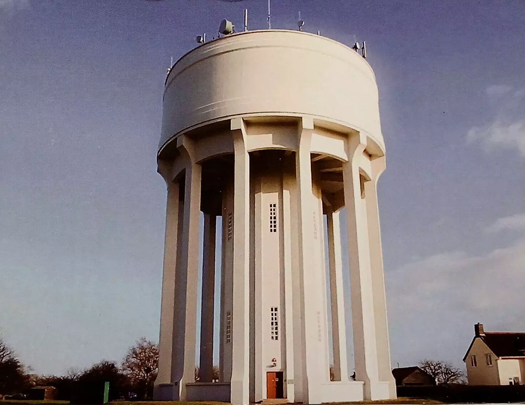 Website: Click Here ADDITIONAL INFORMATION Essex 1, Rye Hill Located at 35 High St, Epping, CM16 4BA, this is a Grade II listed building and now a significant landmark. It was built in 1872 by Jabez Church for the Epping Rural Sanitary Authority. Grid Square TL 45 01. When built its purpose was to to reduce the high death rate from cholera and typhoid that existed locally due to unsanitary conditions. A characteristic of Essex is the use of the word "Jumbo" as an adjective to describe the massive, brick built, water towers of the region. This tower qualifies as a jumbo water tower. A short distance south of Berden, Essex. Along Bridleway 16 towards the Water Tower. Grid Ref, TL465287. Built for the Lea Valley Water Company and positioned near Berden Hall Farm close to a public right of way. To continue your voyage of discovery click right. Epping. Fairfield Road Reservoir and Water Tower - the Tower is located on the opposite side of the road to the reservoir. During World War II Epping was a war zone, with 11 attacks in the area destroying hundreds of homes, damaging farms, roads and railways. One explosion wrecked St Margaret's Hospital after a V2 long-range rocket landed between Fairfield Road and the hospital in 1945. It fell just 35ft from the base of the concrete water tower in the hospital grounds, fracturing its side and forcing about 463,000 gallons of water out of the tank. Six people died and 39 people were injured. Extensive damage was caused to the hospital and homes in Fairfield Road and Union Terrace. The closest building to the blast was a ward opposite the water tower and next to allotments on the south-west edge of the hospital. 161 Challinor, Harlow CM17 9XE. This concrete tower is very visible from the M11 motorway and lies to the east of Harlow on the western side of the M11, about 2 miles north of junction 7. It was built in 1993–1994. Grid Ref. 486098. To continue your voyage of discovery click right. Water tower apparently at The Grange, near Stansted Airport. 7. Toot Hill 8. Bedlars Green Saffron Walden's jumbo Water Tower, Debden Road, was constructed in 1913 for the Borough of Saffron Walden Water Works. More recently it has become redundant for its original purpose. Approximately 28 metres-high, it has accommodated telecommunications, making use of its impressive height. The red brick Edwardian feature, designed by architect A H Forbes and constructed by local builder J Custerson, became a Grade II listed building in 1994. In the 21st century, the tower was for sale. It is located on the south side of the town centre. Grid Ref. TL 538 376. A disused Water Tower that is located off of Cornells Road to the east of the village of Widdington and surrounded by neighbouring farm lands. In 2021 it was for sale as a former water tower with residential development potential. This tower is approximately six miles from Saffron Walden to the north and in the vicinity of Stansted Airport, which is about 11 miles away, with the nearby M11 offering access to London and north. Grid Ref. 545 314. 11. Gunters 12. Canfield 13. Sibleys Water tower at Takeley Park, viewed from the B183 at Takeley FC's ground. Grid Ref. TL 568 236. This tower lies immediately east of Stanstead Airport, about a mile north of Takeley. Postcode: CM22 6PF. 15. Sewards End Located on Love Farm, Cutlers Green, about a mile west of Thaxted. It dates from 1938 when a scheme to improve water supply to the area involved replacing existing pumping stations and building three new water towers. Grid Ref. 591303. To continue your voyage of discovery click left. Tye Green is a hamlet in the civil parish of Wimbish, in the county of Essex. Safron Walden is about 3 miles west. The water tower is located at the southern end of the hamlet. Grid Ref. 591 352. Possibly confused with the water tower at Tye Green, nearby and detailed above and therefore subject to confirmation with further research. This tower is thought to be located in the hamlet and the civil parish of Wimbish, in the county of Essex. Safron Walden is about 3 miles west. 19. The Poplars, High Easter This tower lies in the hamlet of Mill Green to the north-east of Fryerning; nearby is the Gospel Hall. This is north-east of Ingatestone and the A12 (T) road, south-west of Chelmsford. Grid Ref, 639 008. The junction of Mill Green Road and Mill Lane where the water tower stands is adjacent to the Fryerning Conservation Area. The water tower is located on the eastern outskirts of Great Dunmow Essex, east of Braintree. It's situated beside the main road to Braintree, which was formerly part of the old A120. The tower is topped with numerous communication antennae. Grid Ref. 647223. To continue your voyage of discovery click right. 22. Helions Bumpstead Water Tower at Garnetts Lane, Felsted, Dunmow, Essex, CM6 3EJ. There are many water towers around the country, but this one is a quite unusual design. The 1960s concrete landmark sits incongruously on the edge of the pretty Essex village of Felsted, and was once used to supply homes with water. Now decommissioned the tower, which sits in a plot of about a fifth of an acre, has been up for sale in recent years with a price tag of £325,000. The site’s future owner could perhaps, subject to planning consent, convert the tower into a home. Grid Ref. 691 209. Felstead lies between Great Dunmow and Braintree. 24. Admirals Park, Chelmsford 25. Great Saling 26. Longstomps, Chelmsford Wethersfield is a village and civil parish on the B1053 road about 5 miles north of Braintree. The water tower is located just north of the village near Wethersfield Airport. Grid Ref. 708329. To continue your voyage of discovery click right. 28. White Courts,Braintree 29. Braintree 1 & 2 Lyons Hall Road, Bocking, on the north-west side of Braintree. A unique attractive red brick former water tower arranged over ground and two upper floors with ladders connecting each floor. A ladder also provides access from the second floor to the 